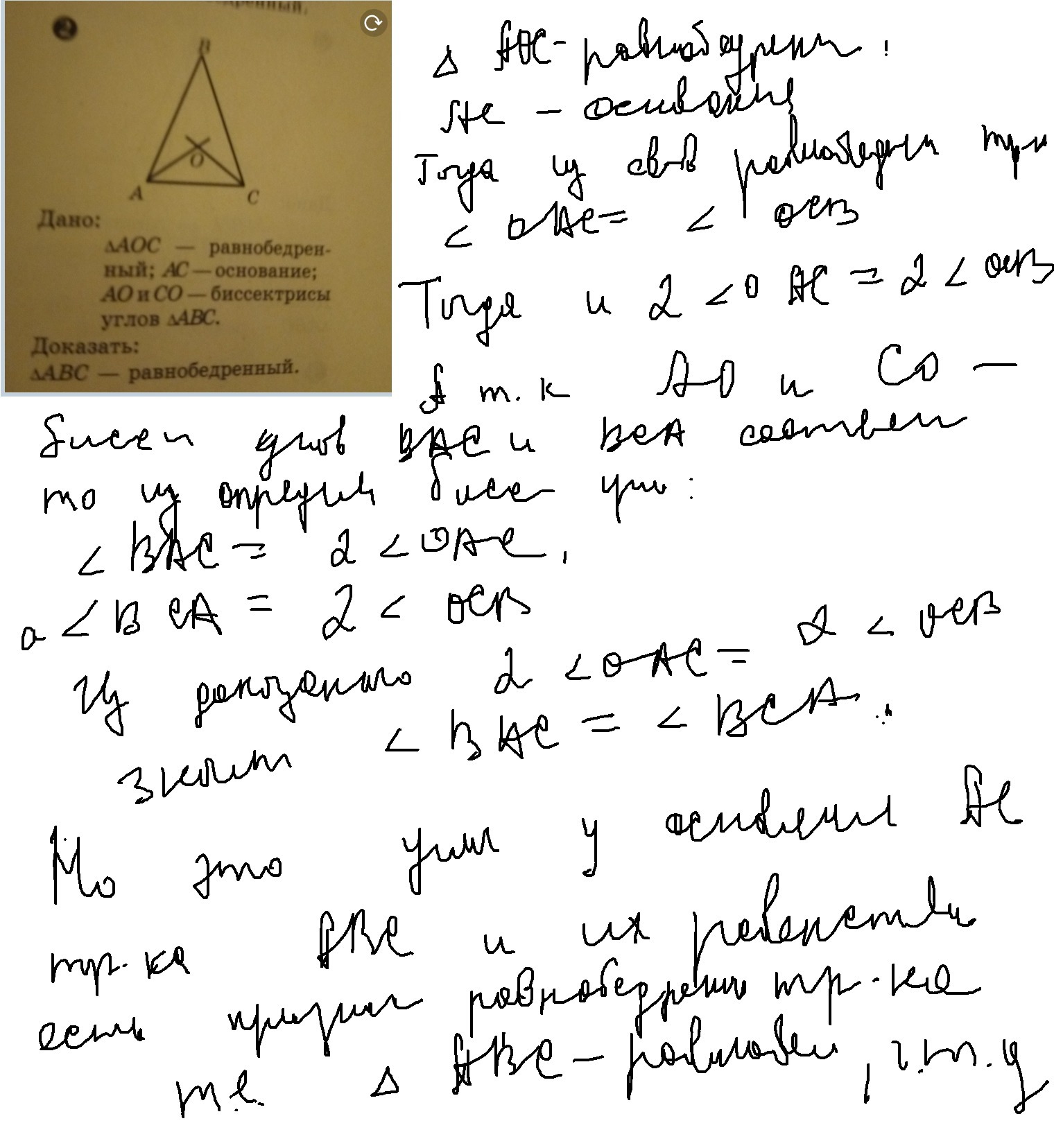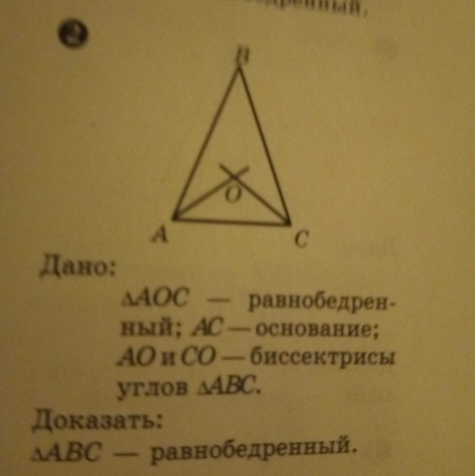 Дано: треугольник AOC - равнобедренный (с основанием AC)