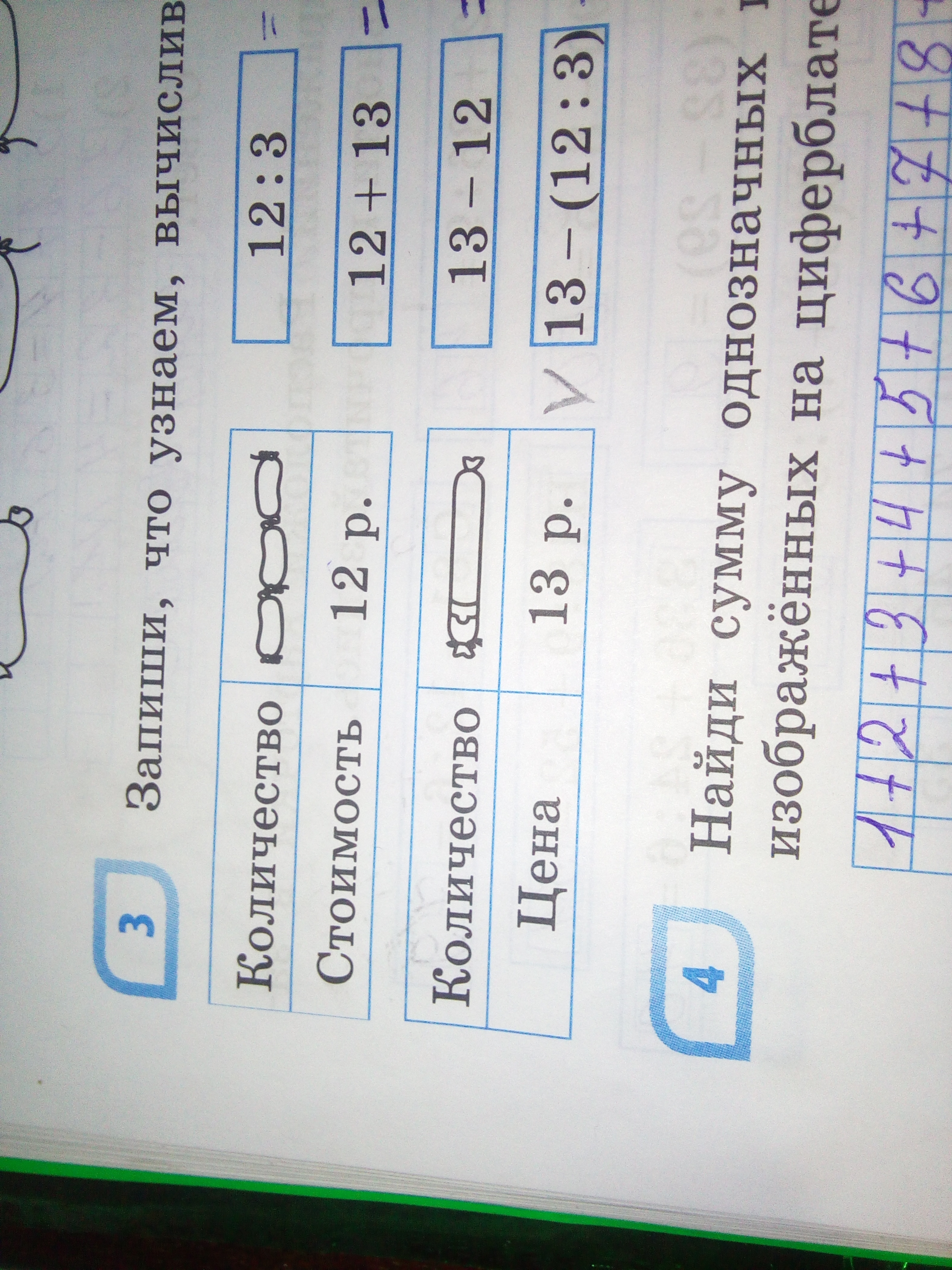 13-12=на1(р.) одна колбаса дороже 3 сосисок.