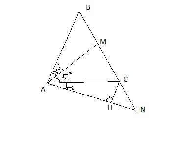 Из условия равенства суммы углов ΔAMC 180° найдем, что