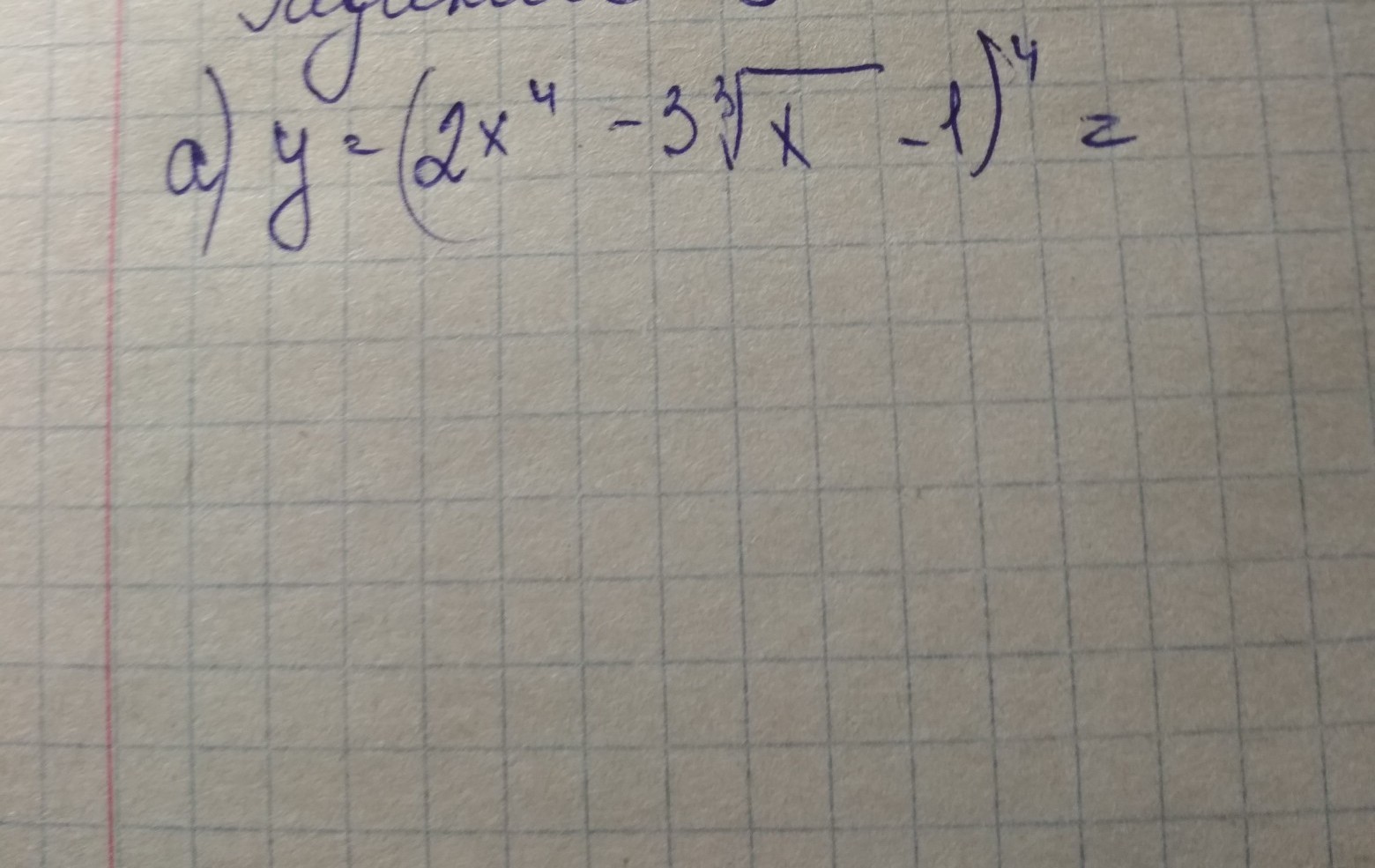y = 4(2 {x}^{4}  - 3 sqrt[3]{x}  - 1) ^{3} (8 {x}^{3}  -  frac{1}{ sqrt[3]{ {x}^{2} } } )