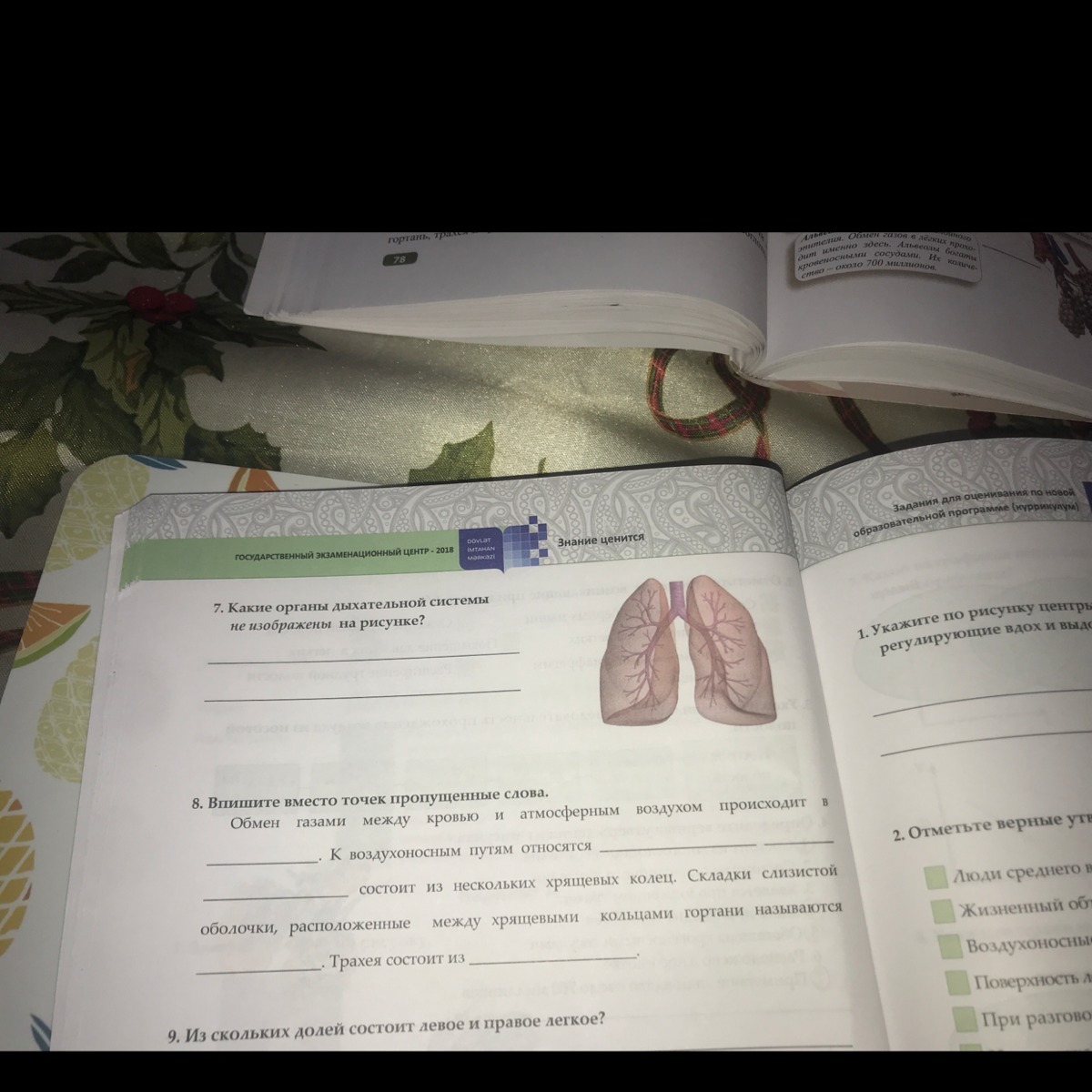 2 пропуски : альвеолах, к путям относится : носовая полость , глотка , гортань, трахея , бронхи , из хрящевых колец - трахея. , голосовые складки ( связки ) , трахея состоит из хрящевых колец.