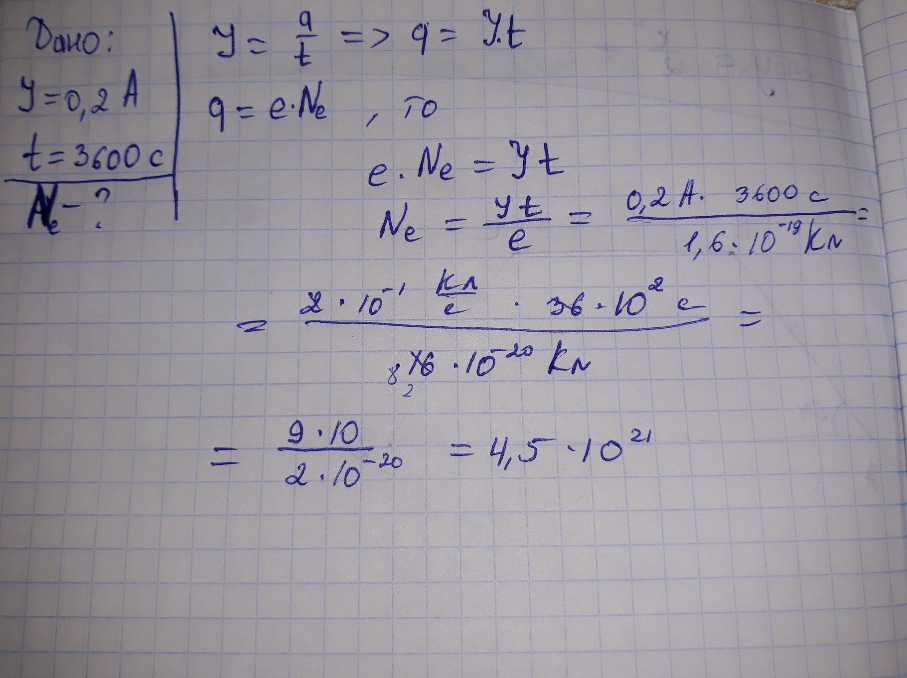 сила тока в спиралей электрической лампочки I=0.20A .Сколько электронов прошло через поперечное сечение спиральной лампочки в течение часа?