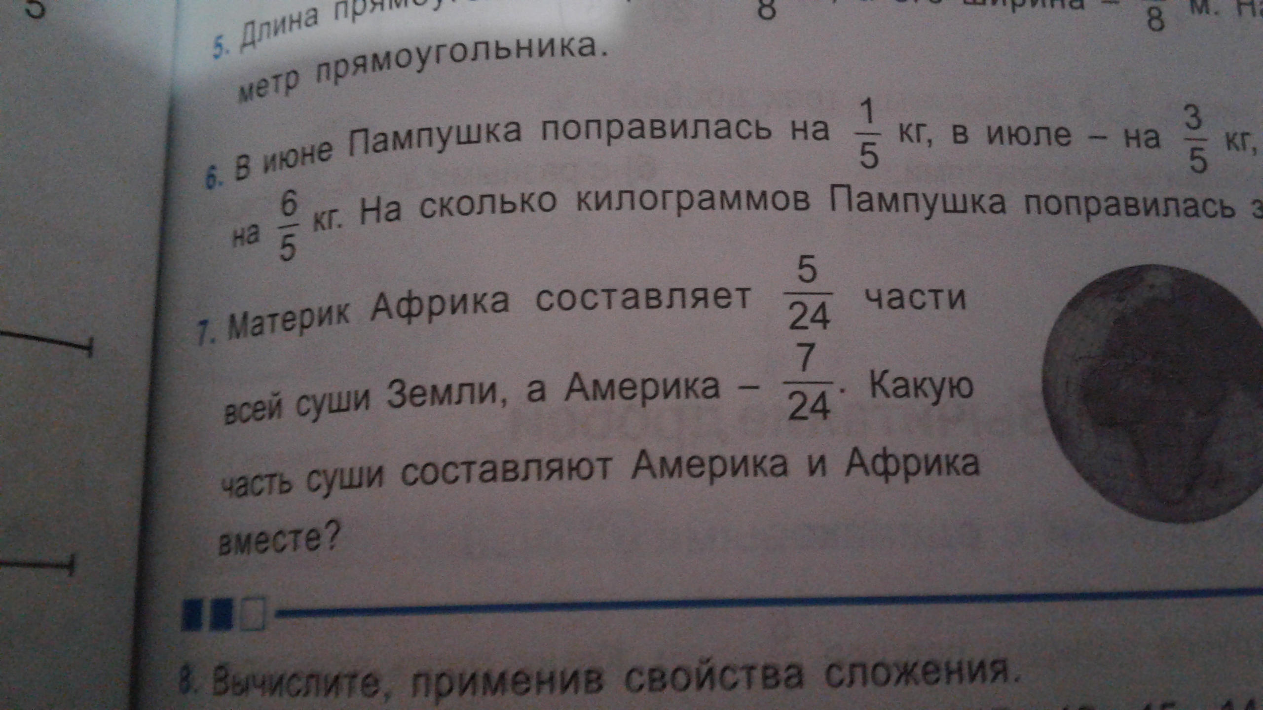 5/24 + 7/24=12/24=1/2 всей суши