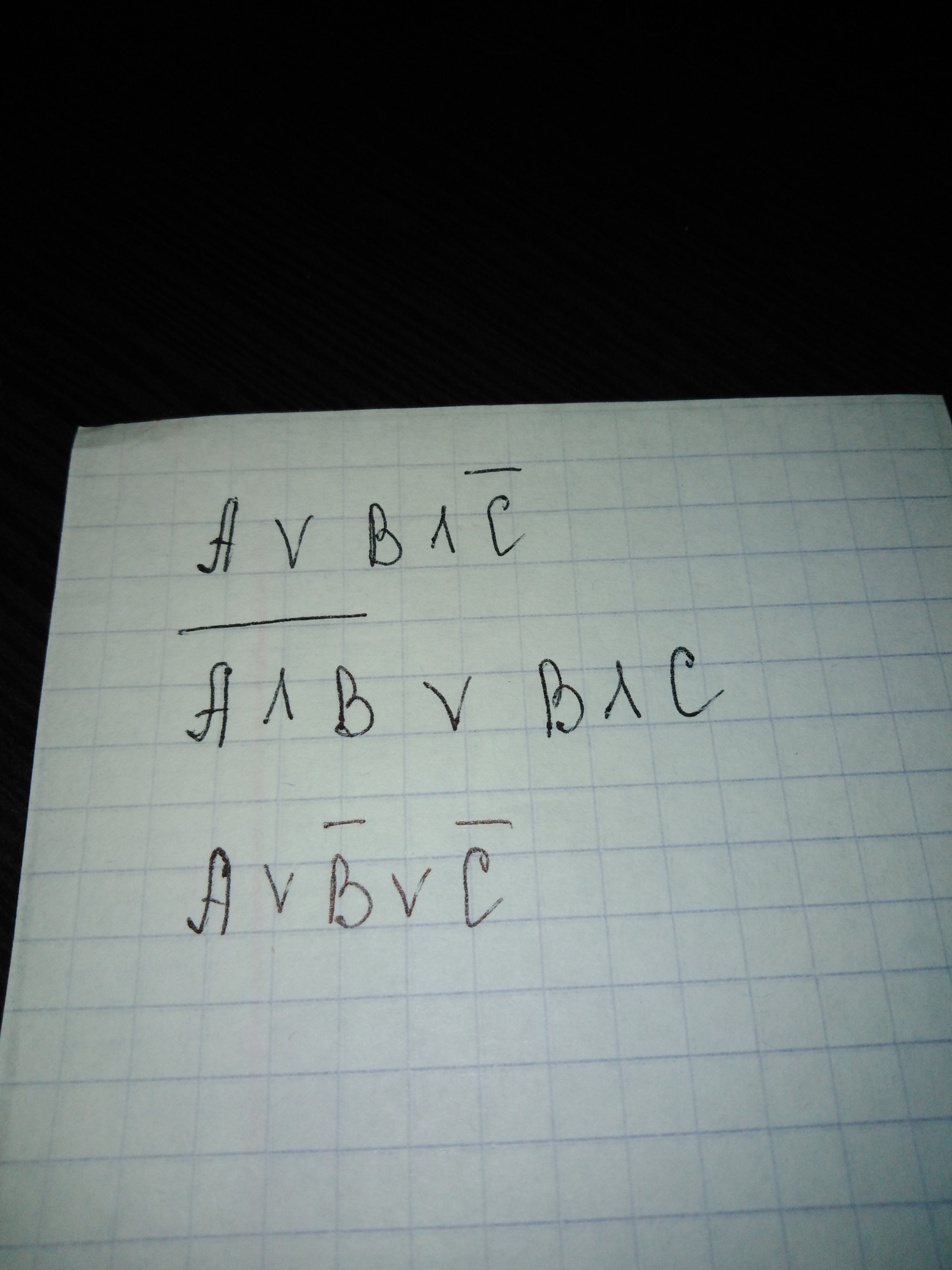 Для простоты понимания знак "∨" можно представить как знак сложения "+", знак "∧" (или в другом обозначении "&") как знак умножения "*", а черточка над знаком (или в другом обозначении "¬") обозначает отрицание, т.е. противоположное значение ( отрицание нуля равно единице, отрицание единицы равно нулю).