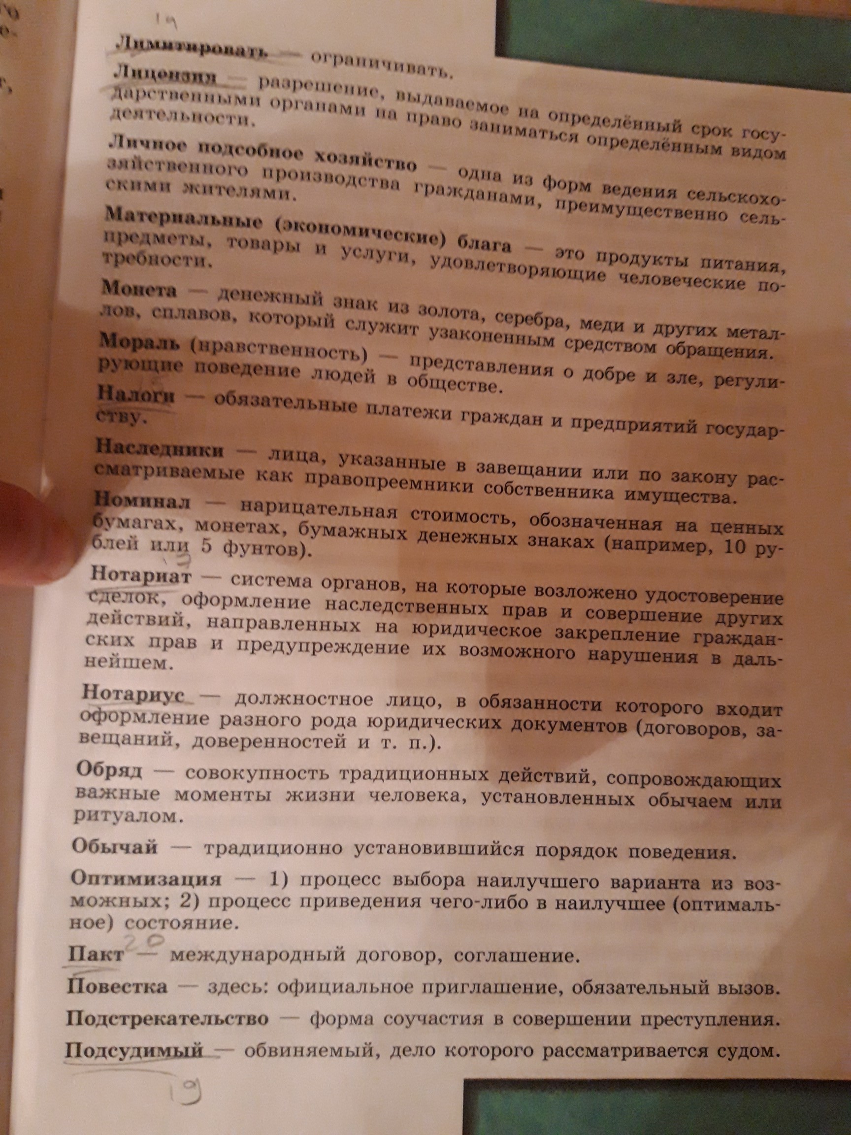 Наследники, нотариат, нотариус, пакт, повестка, подстрекательство, подсудимый, лицензия, лимитировать (можно так же считать экономическим термином)