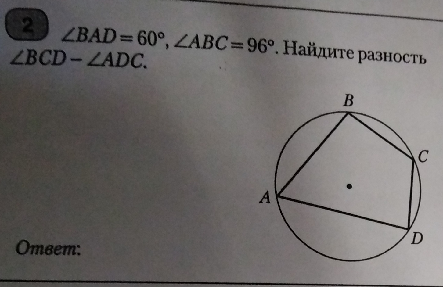 Тогда ∠ADC=180°-∠ABC=180°-96=84°