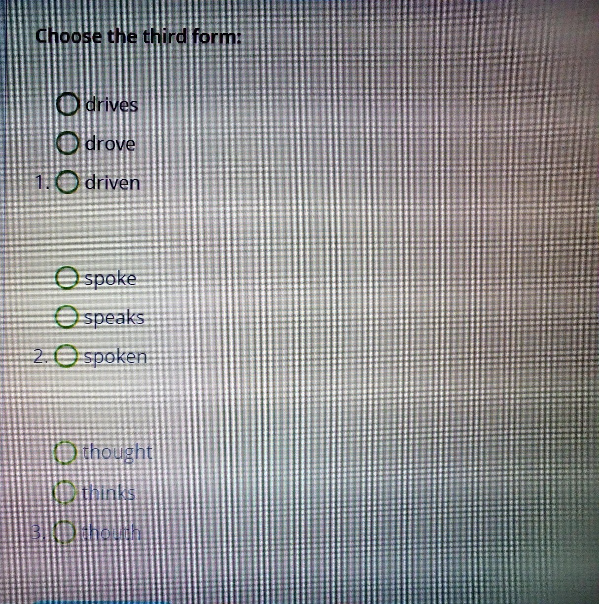 Вам нужно написать 3 форму глагола. У обоих ответ неправильный!!!