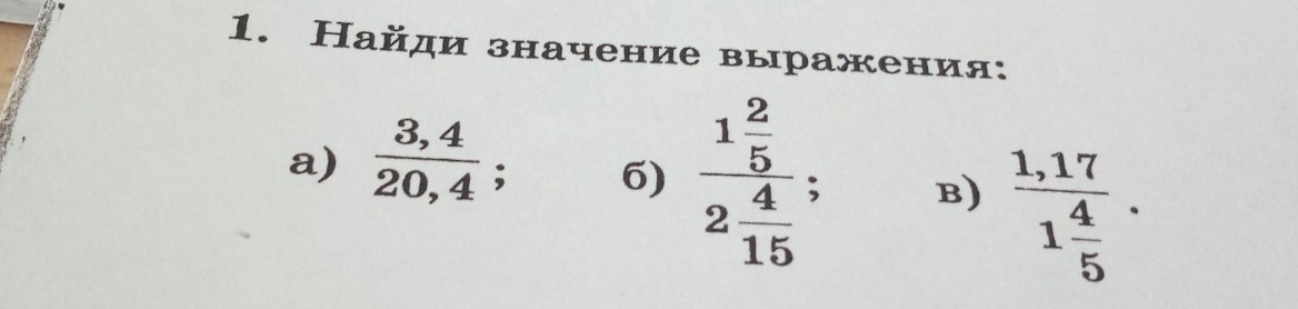 в) 117/100 : 9/5 = 117/100 * 5/9 = 13/20
