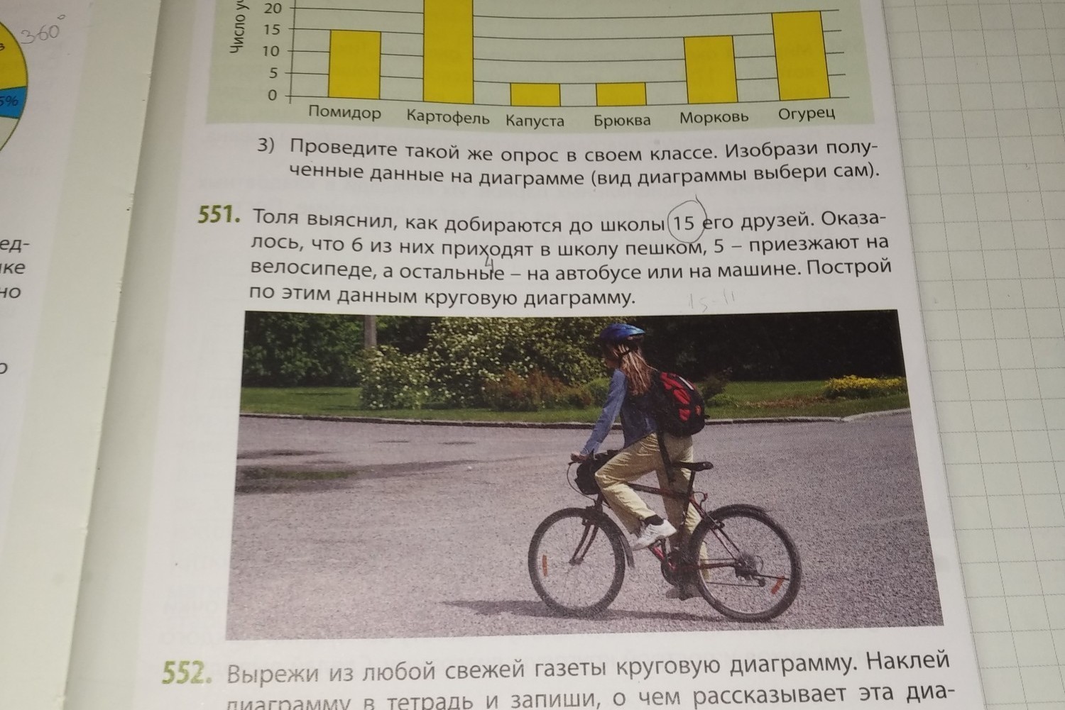 3) 24*5= 120 ( градусов)- люди, которые приезжают в шк на велосипедах