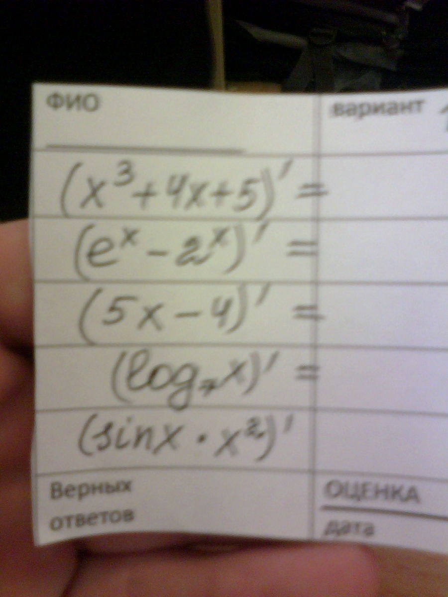 а)3 в степени х+4; б)=е в степени х -2 в степени х•ln2;в)5;г)1/хln7;д)cosх•х^+2х•sinх