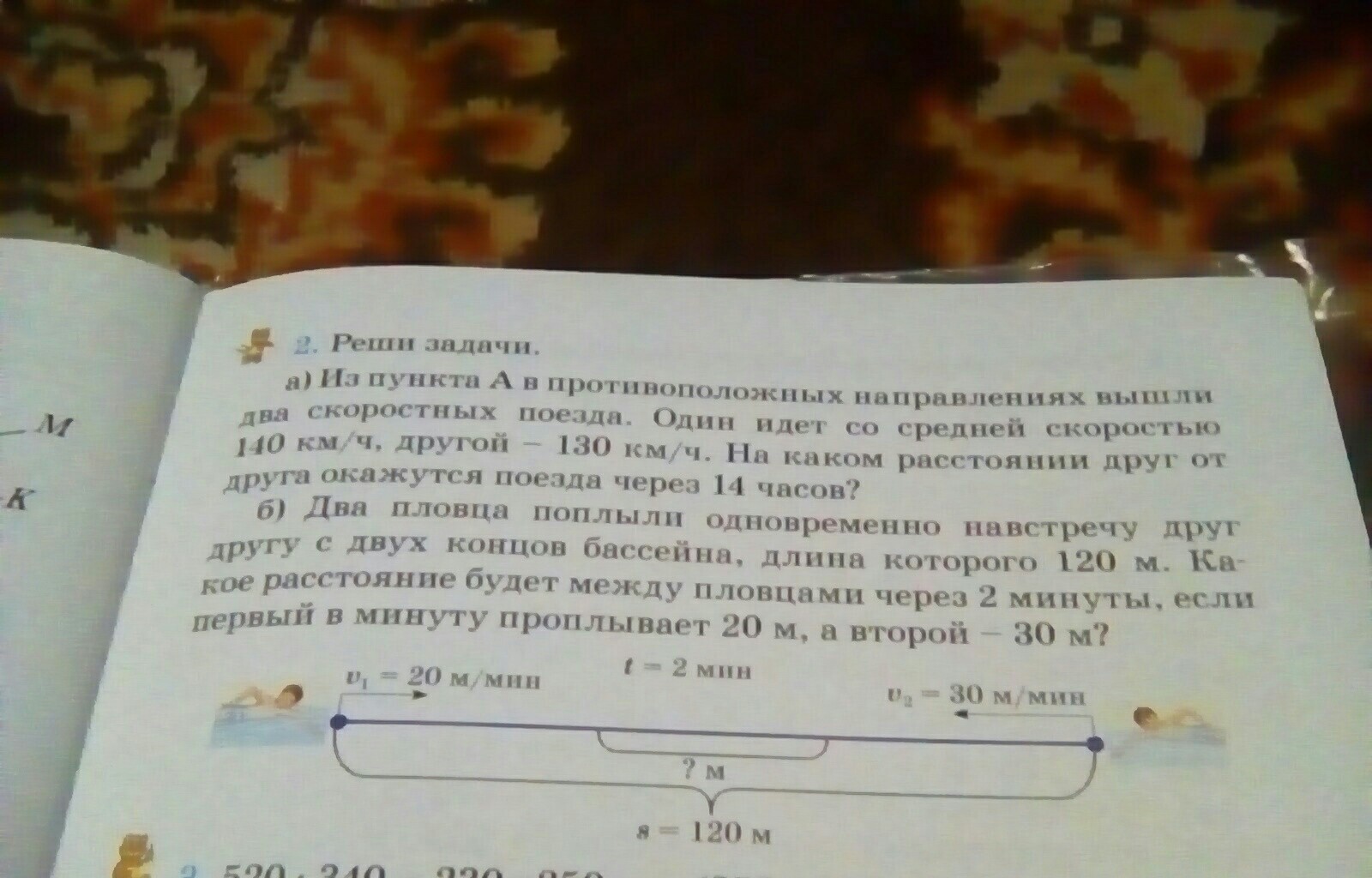 Ответ: 20 м будет между пловцами через 2 минуты.