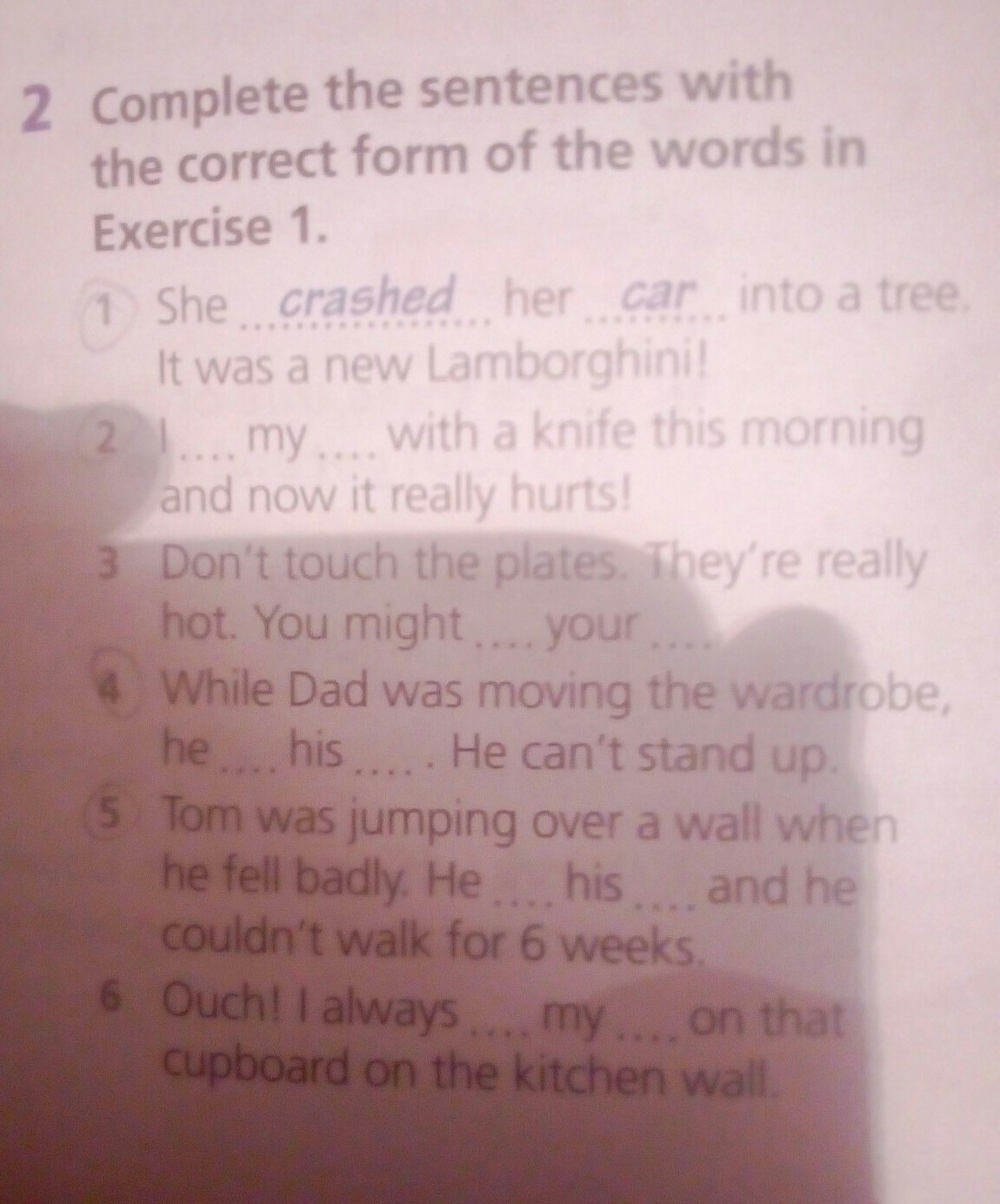 5. Tom was jumping over a wall when he fell badly. He broke his leg and he couldn't walk for 6 weeks.
