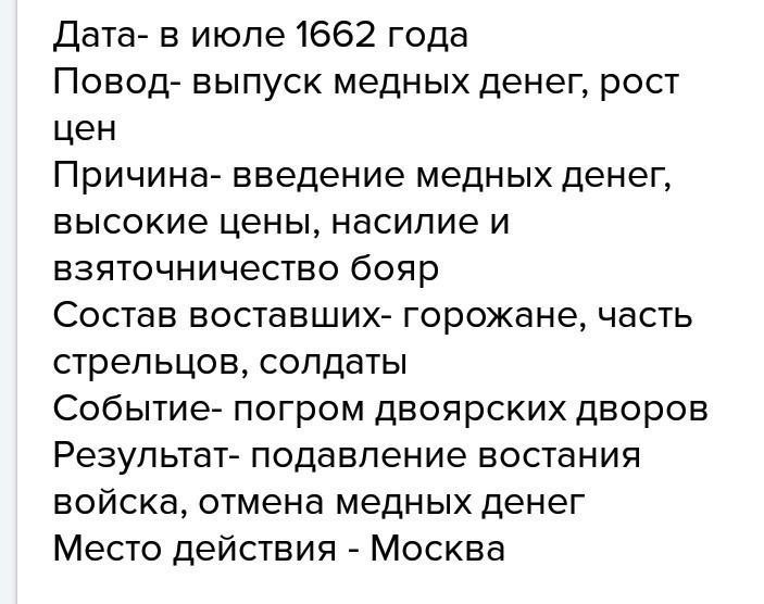 1. Расскажите о Медном бунте по плану : 1) Причины , 2) ход восстания ,характер действий бутаншиков .3 итоги выступления