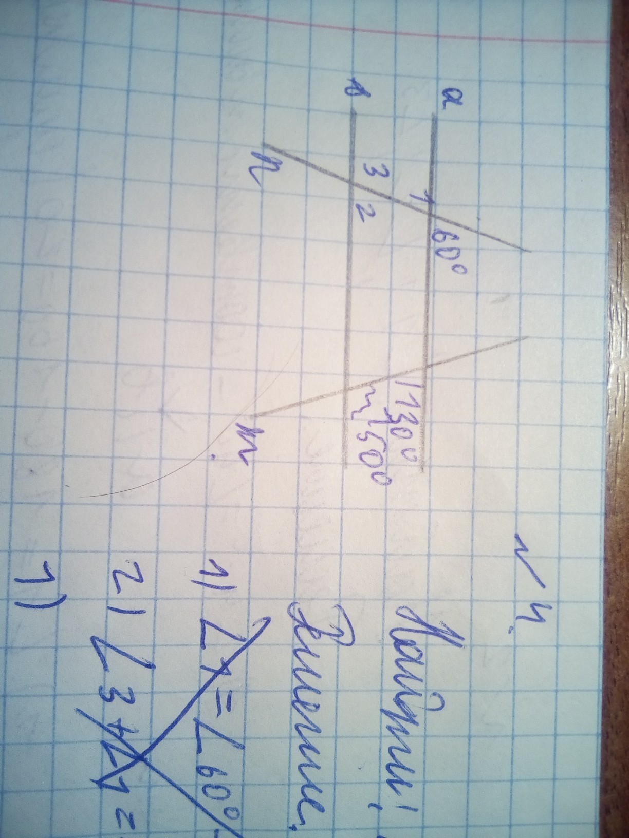 т.к. сумма двух углов равна 180 (130+50), то прямые (а) и (в) параллельны , <1=60,(вертикальные), <2=60 (соответственные), <3=180-<2=180-60=120(смежные)
