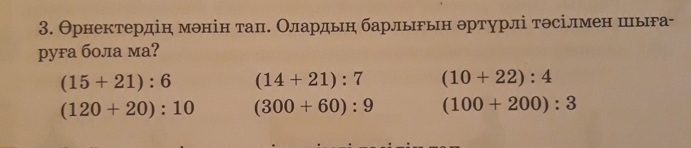 (15  + 21) div 6 = 3 6div 6 = 6 \ (120 + 20) div 10 = 140 div 10 = 14 \ (14 + 21) div 7 = 35 div 7 = 5 \ (300 + 60) div 9 = 360 div 9 = 40 \ (10 + 22) div 4 = 32 div 4 = 8 \ (100 + 200) div 3 = 300 div 3 = 100