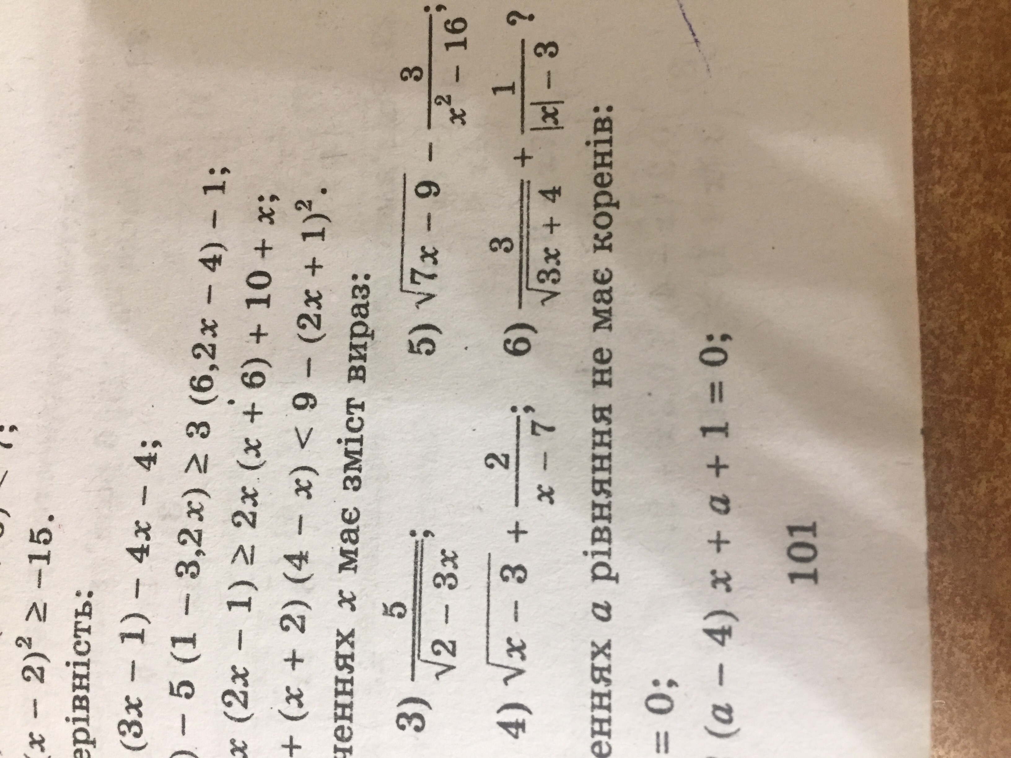 Помогите решить пожалуйста 4,5,6 задание.При каком значениях х имеет содержания выражение,