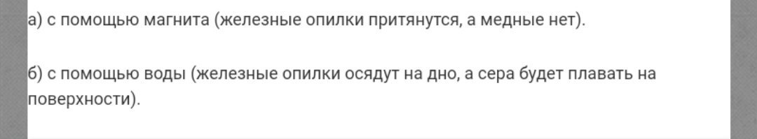 4. Предложите способы разделения смесей, состоящих: а) из железных и медных опилок; б) из порошков железа и серы.