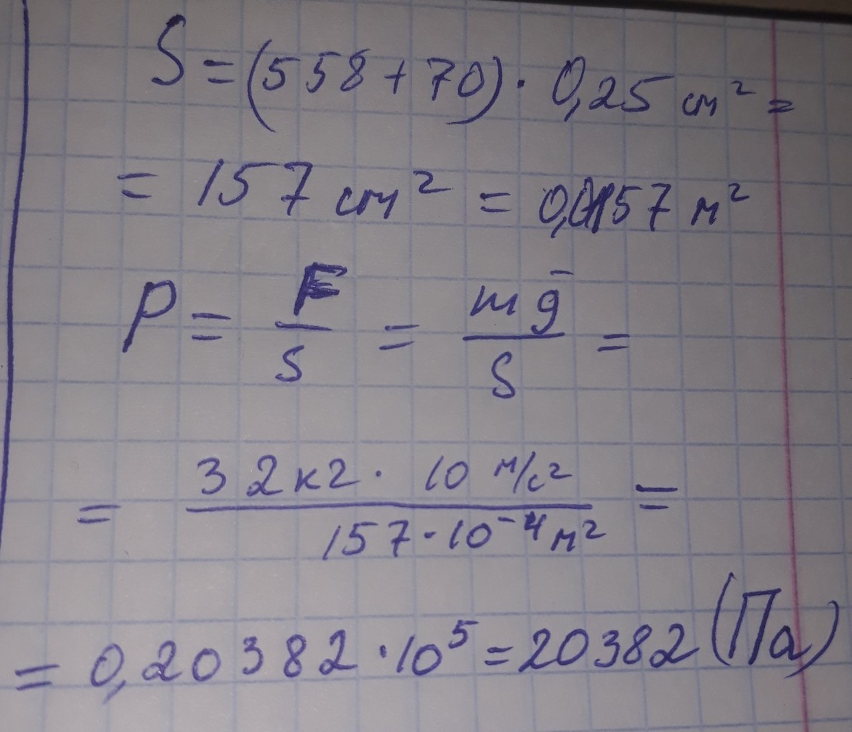 зная свою массу и площадь ботинка Вычислите Какое давление вы производите при ходьбе и какое стоя на месте указания площадь опоры ботинка Определите следующим образом поставьте ногу на лист клетчатой бумаги и обведите контур той части подошвы на которую опирается нога сосчитайте число полных квадратиков попавших внутрь контура и прибавьте к нему половины числа неполных квадратиков, через которые прошла линия контура. Полученное число умножьте на площадь одного квадратика ( площадь квадратика на листе, взятом из школьной тетради, равна 1/4 см в квадрате ) и найдите площадь подошвы. Мой вес: 32 кг. Полных квадратиков: 558. Неполных: 70