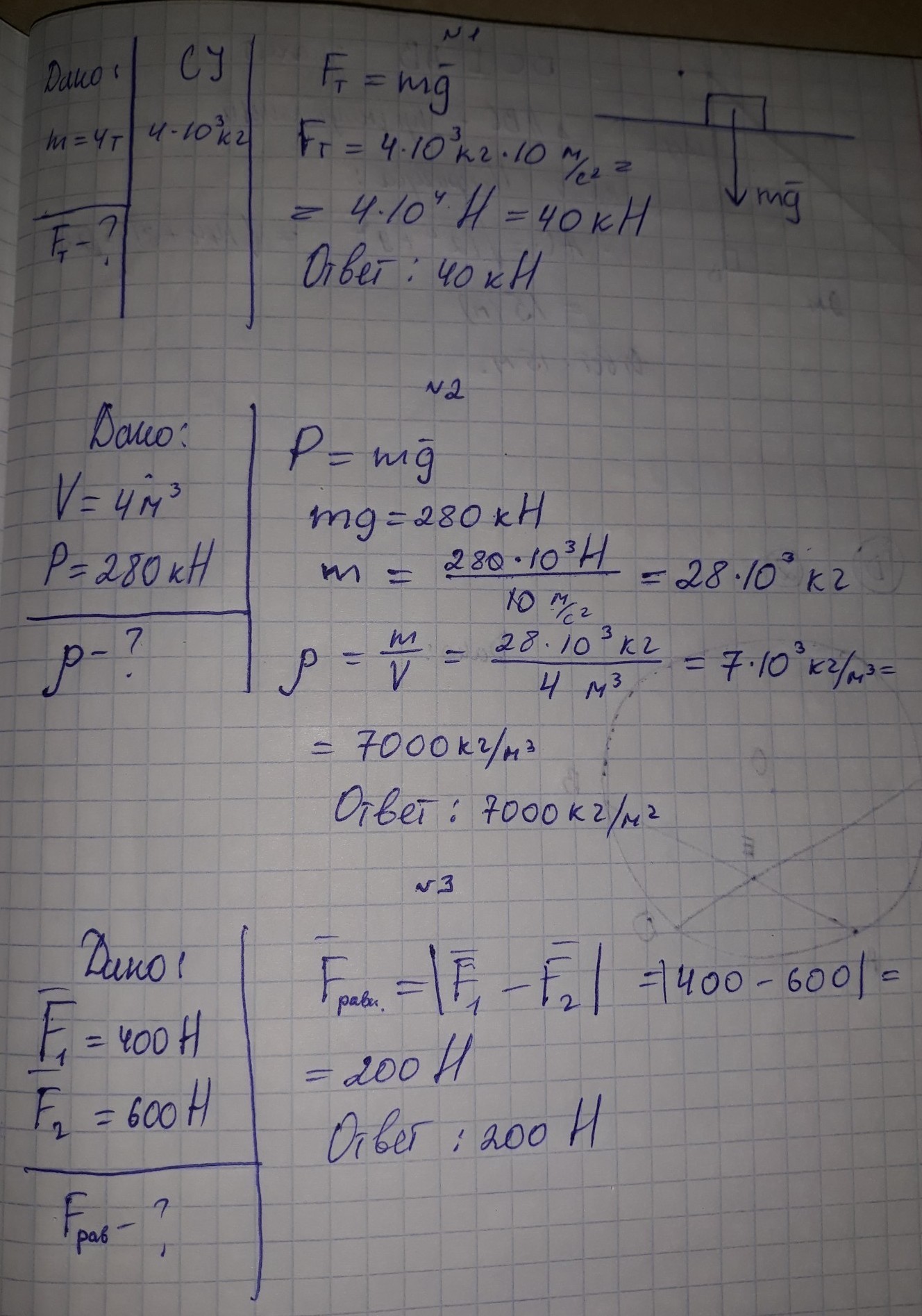 найдите силу тяжести действуюющию на тело массой 4 т изобразите эту силу на рисунке
