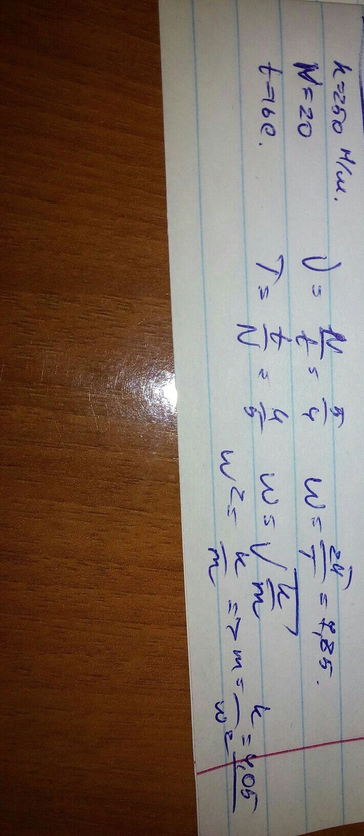 Найти массу груза, который на пружине жесткостью 250 Н/м делает 20 колебаний за 16 с. 2.Какое значение получил ученик для ускорения свободного падения при выполнении лабораторной работы, если маятник длиной 80 см совершил за 1 мин 34 колебания?