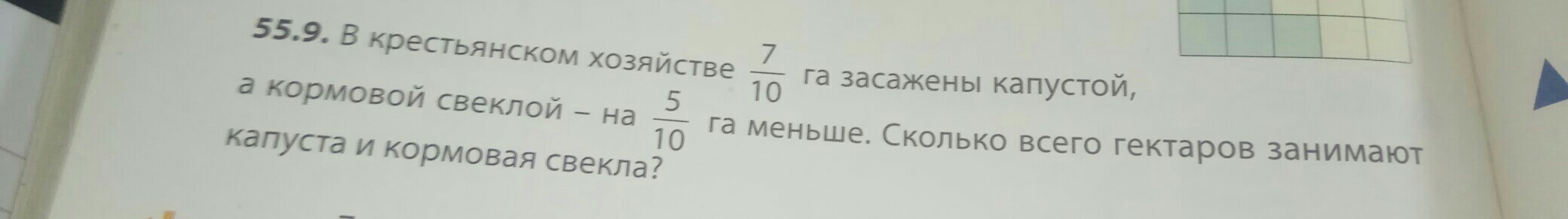 2)7/10+2/10=9/10=0,9га (капуста и свекла)