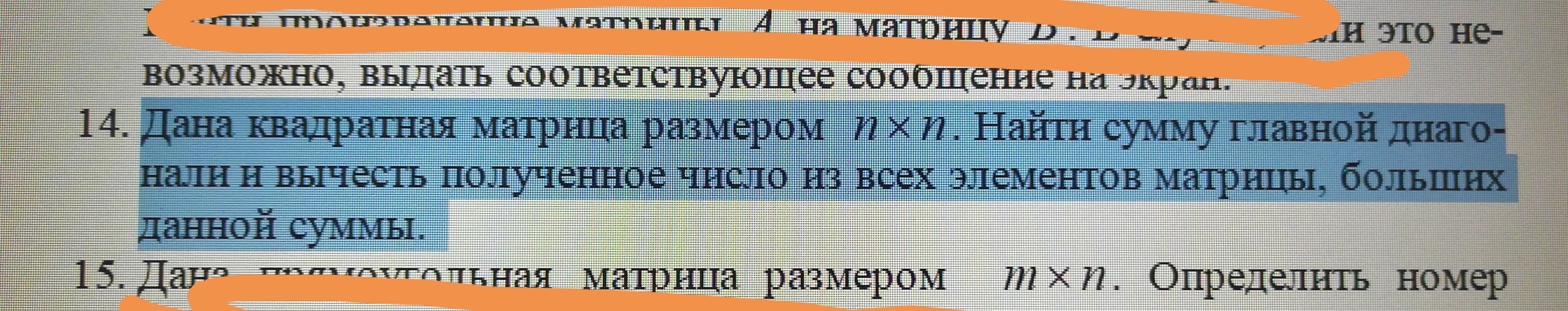 Помогите пожалуйста. Нужно написать программу Pascal. Сумму диагонали нашла, а второе условие не знаю как выполнить(