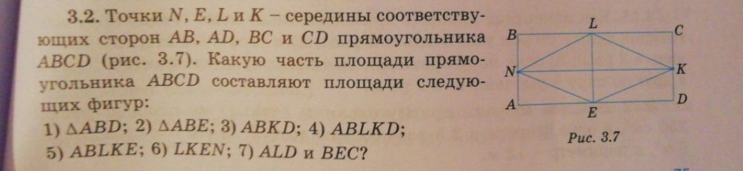 4. 7/8 площади прямоугольная, т.к. Эта фигура тот же прямоугольная, только без треугольника CLK, который составляет
