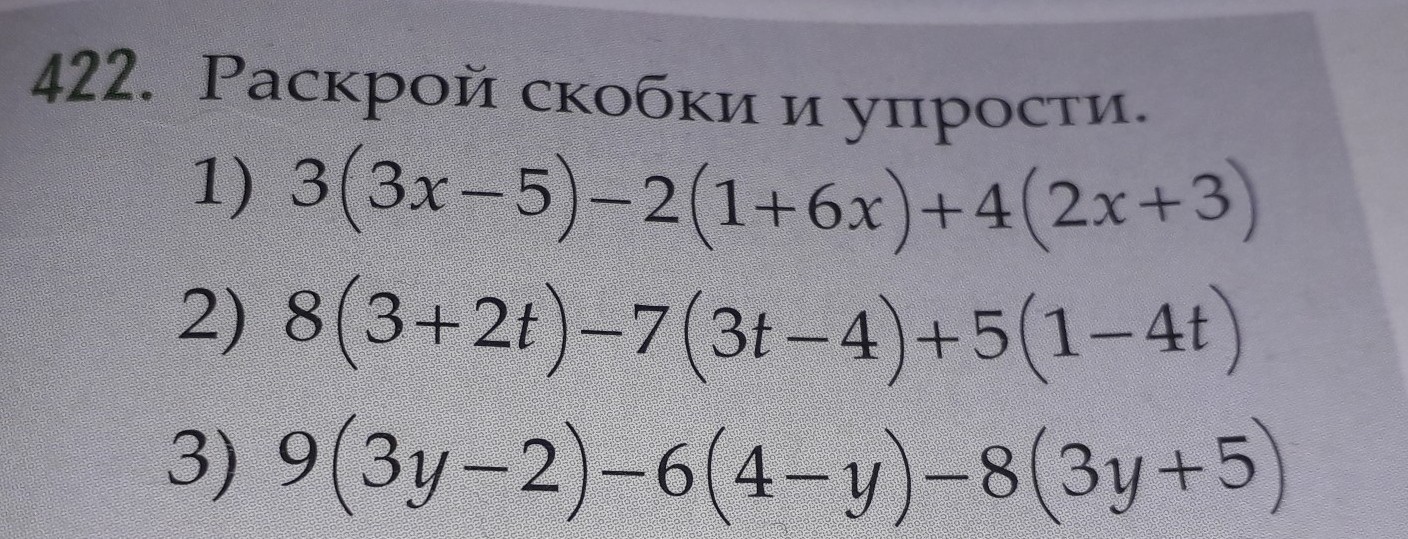 Пошаговое объяснение: при раскрытие скобок просто умножаешь число стоящие за скобкой на каждый член в скобке. Надо учитывать еще знаки:
