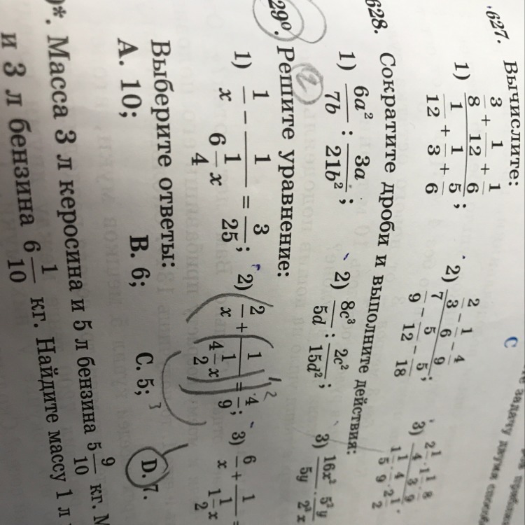 при х≠0 2/х+2/9х=4/9, ОЗ=9х, 18+2=4х, 4х=20, х=5 -ответ С
