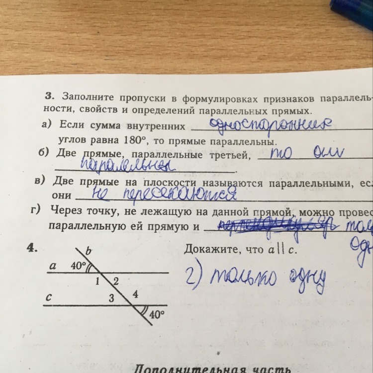 ∠2 и ∠3 =40° (вертикальные)=>они равны; они накрест-лежащие;=>a ║c