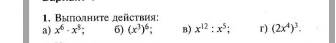 при умножении степени складываются .Т.е 6+8 = 14. Ответ x^14