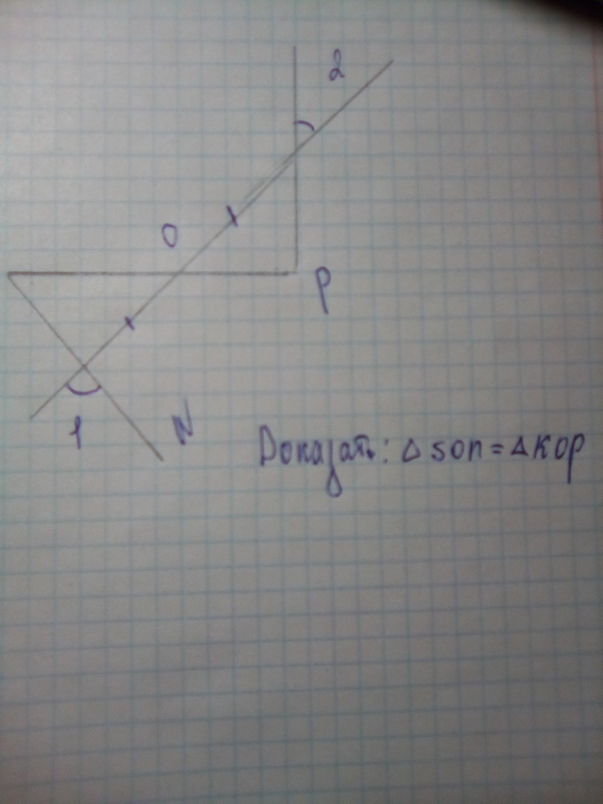 ΔSON=ΔKOP по стороне и двум прилежащим к ней углам (второй признак равенства треугольников