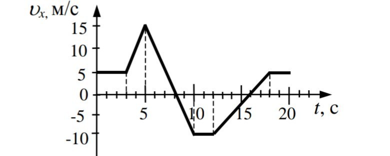 На рисунке приведён график зависимости проекции скорости тела от времени при прямолинейном движении вдоль оси X. Определите проекцию ускорения тело в интервале от 5 секунд до 10 секунд.