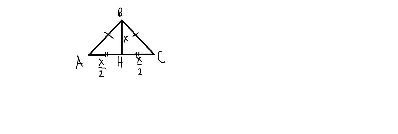 3. Рассмотрим прямоугольный треугольник ABH, в котором AH=x/2, BH=x. Тогда, по теореме Пифагора: