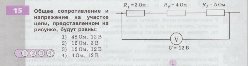 Rобщ = R1+R2+R3 = 3+4+5 = 12 Ом