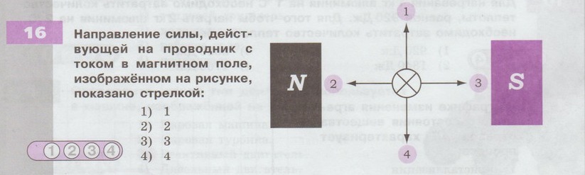 Направление силы, действующей на проводник с током в магнитном поле, изображённом на рисунке, показано стрелкой...