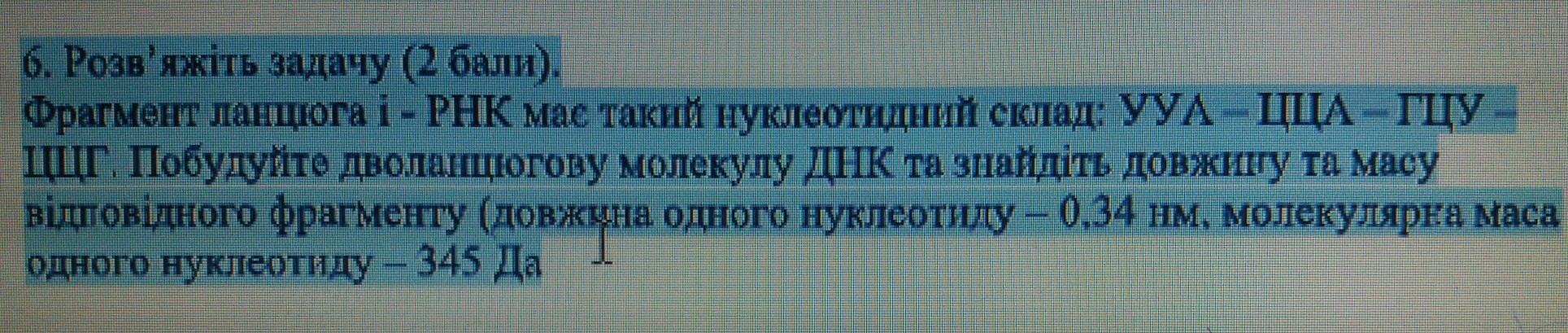 1. По Условию задачи дан фрагмент цепи РНК. Достраиваем цепь ДНК по принципу комплементарности.