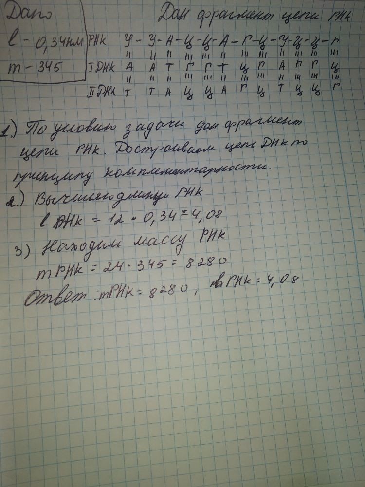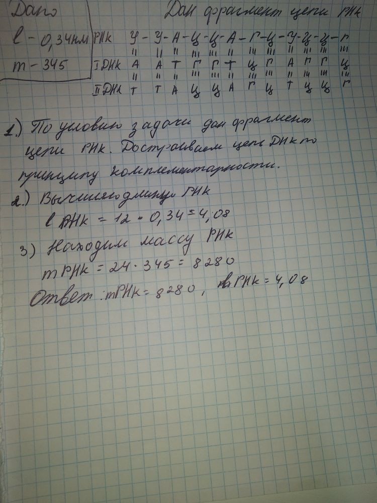 3. Находим массу РНК = 24 *345 = 8280