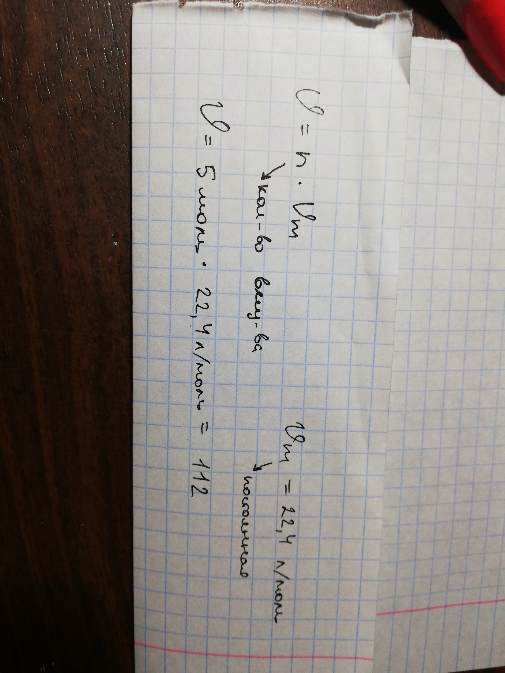 Где V - объем; n - количество вещества ;Vm - постоянный объем равный 22,4
