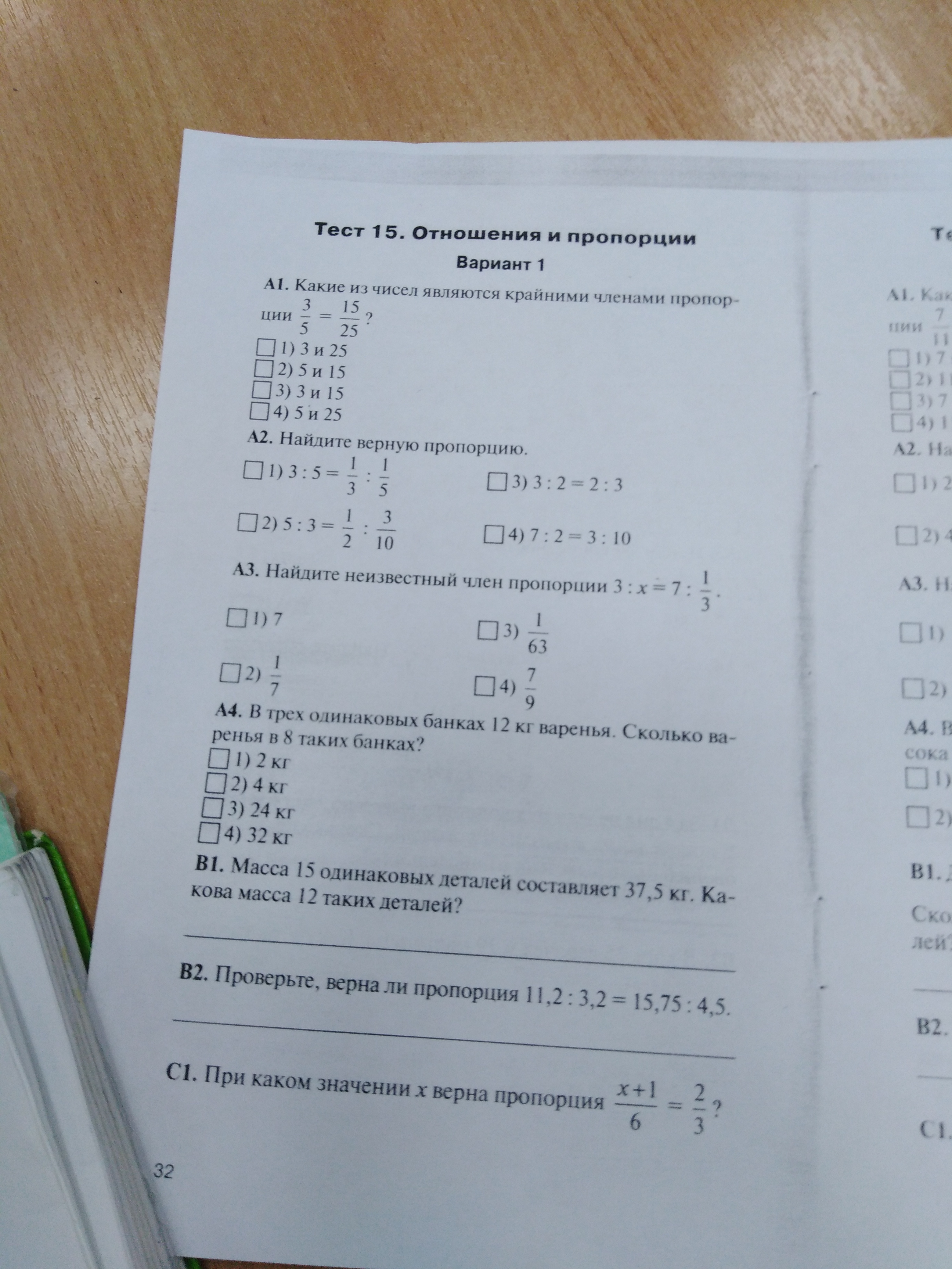 Срочно помощь по тесту 6 класс тема Пропорции и Отношения.