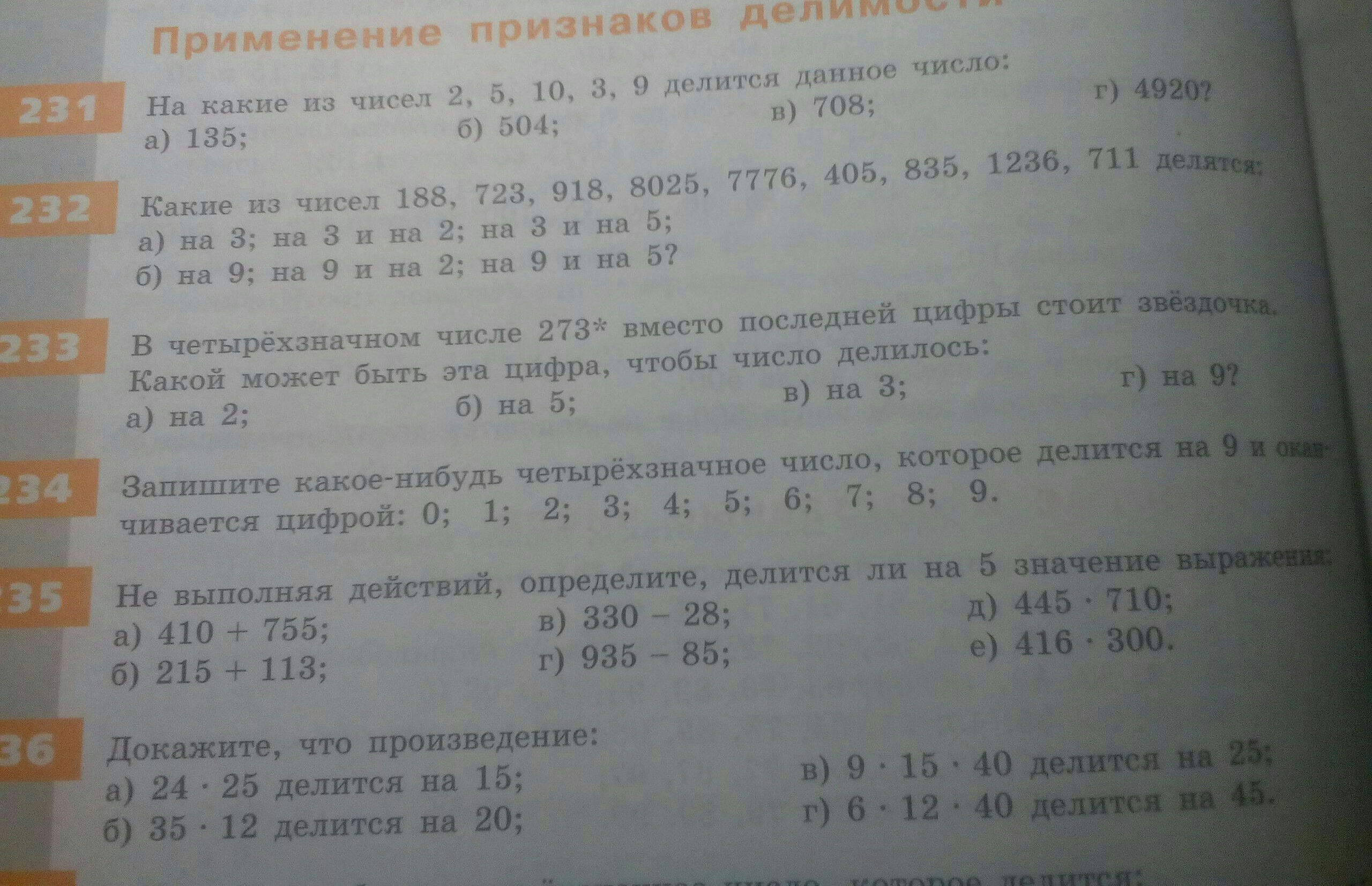 а) на 3 = 918; 8025; 7776; 405; 1236; 711 на 3 и на 2 = 918; 7776; 1236. на 3 и на 5 = 8025; 405.