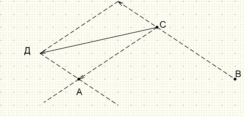 мы получили что вектор напряженности в точке С от заряда А равен вектору СА, вектор напряженности в точке С от заряда В равен вектору АД,