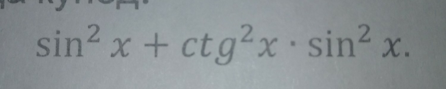 sin ^2x+ctg^2x×sin^2x=sinx^2+(cos x×sin x )^2=sinx^2+(cosx/sinx×sinx)^2=sinx^2+cosx^2=1