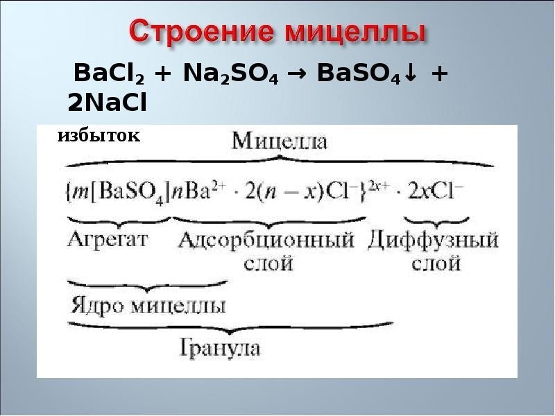 золь сульфата бария получен реакцией избытка хлорида бария с сульфатом алюминия. написать формулу мицеллы этого золя