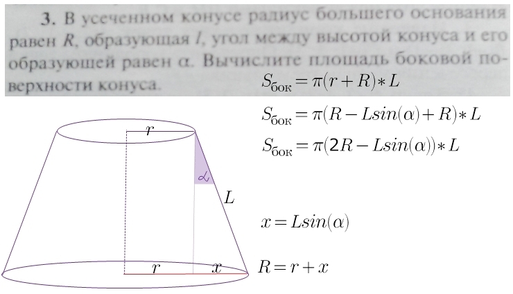 задача сводится к нахождению радиуса меньшего основания конуса...