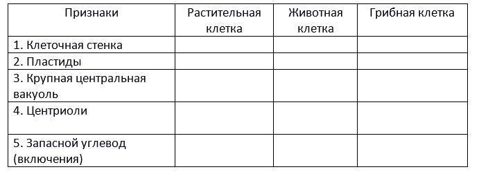 Заполните таблицу и ответьте на вопрос: О чём свидетельствуют сходства и различия в строении клеток?