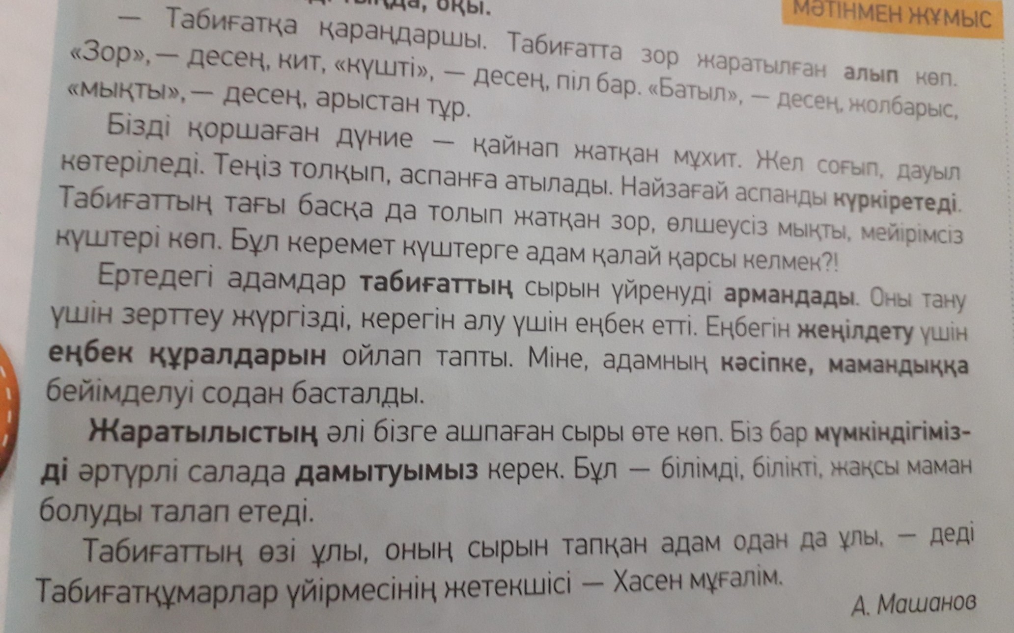 2.Мәтінде табиғат пен адамның байланысы қалай көрсетілген?