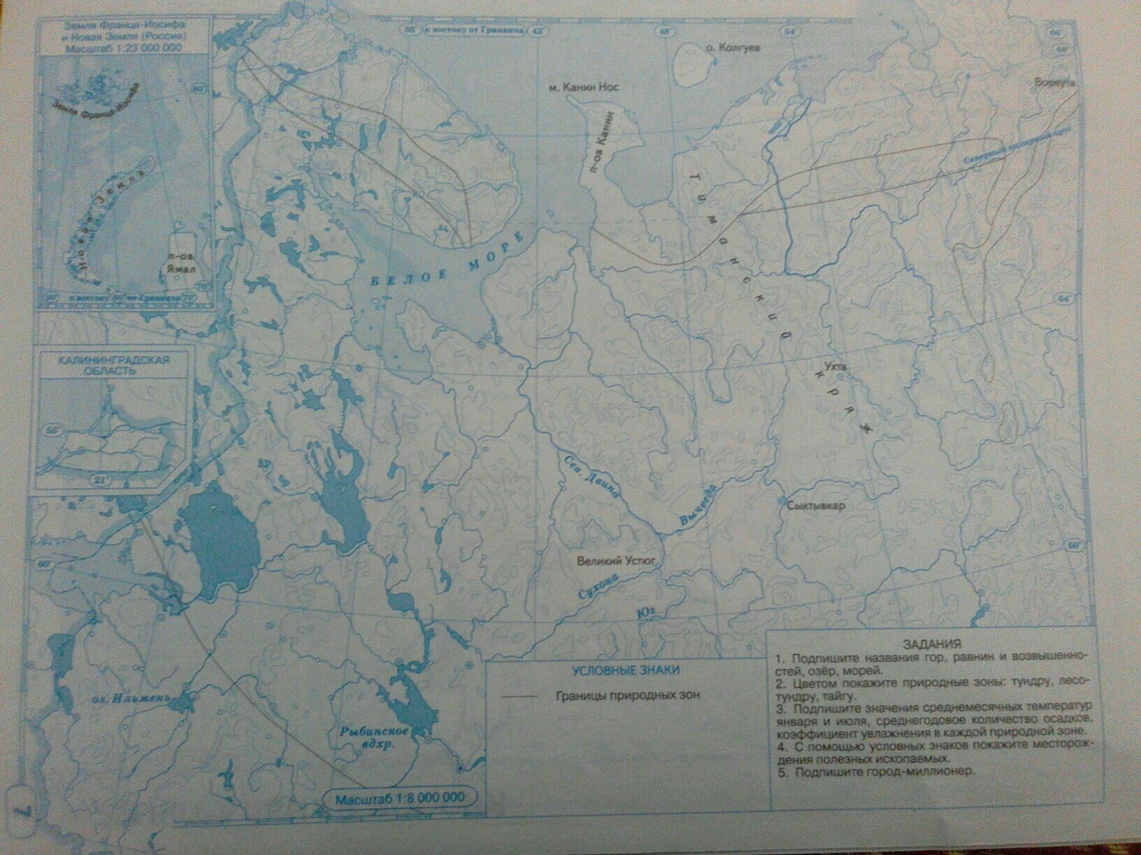 Контурная карта Европейского Севера России (см. Приложение)