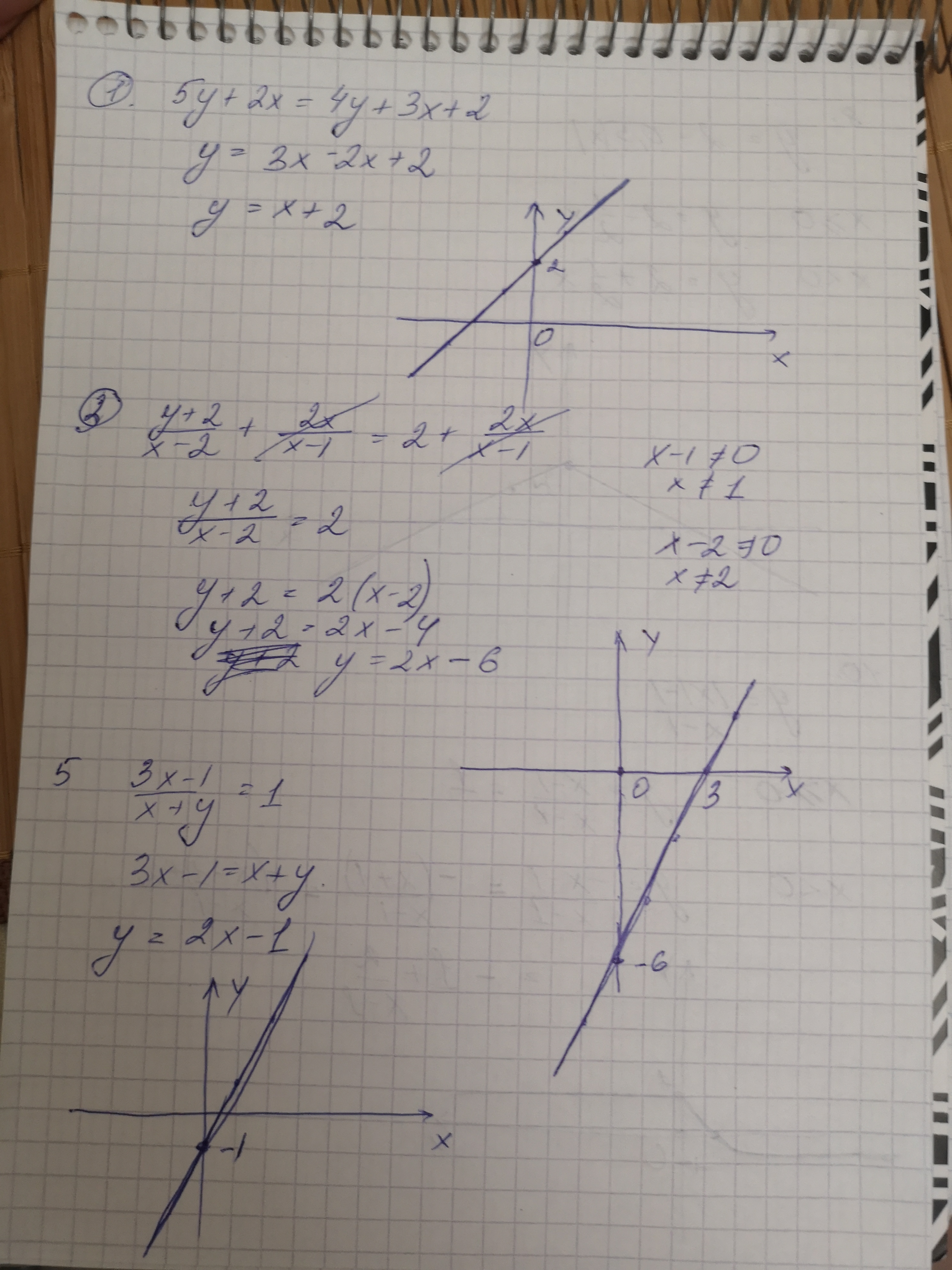 5)3х-1=х+у, у=2х-1, х не=у, график-прямая