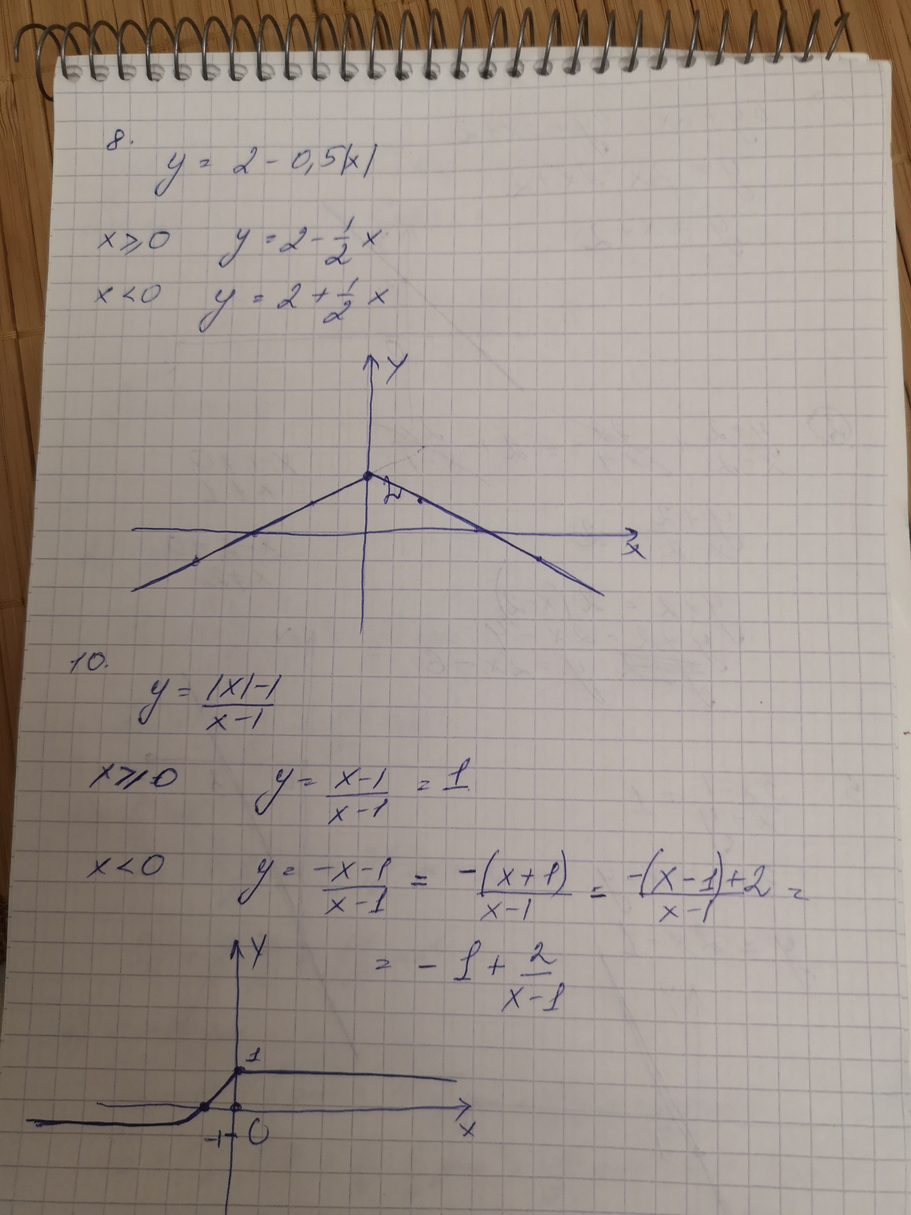 8)у=2-0,5!х!, если х>=0, то у=2-0,5х, если х>0, то у=2+0,5х, строятся две пямые при х>=0 и х<0
